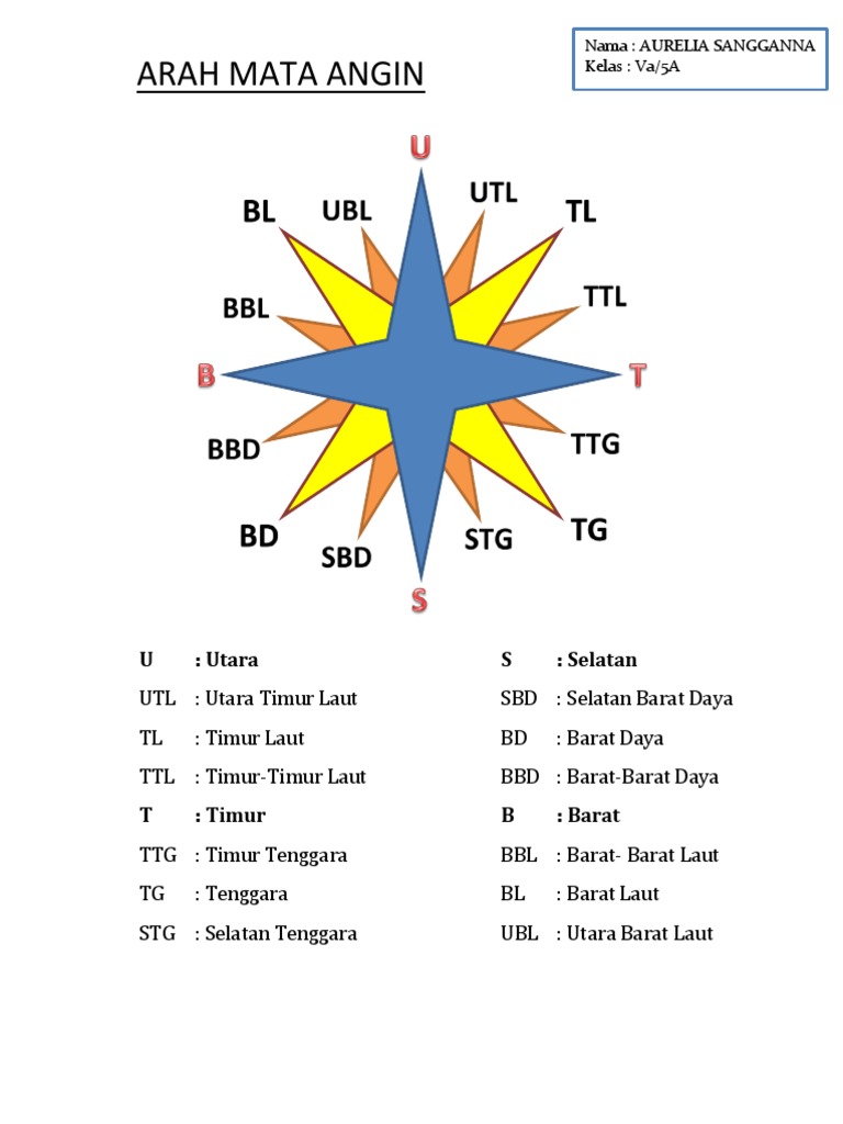 Nama-nama arah mata angin dicetak di kertas lalu dipotong-potong dan ditempelkan di kertas karton besar sesuai arahnya. Ini adalah versi stabil diperiksa pada tanggal 18 Maret 2021. Jika anda masih asing dengan arah tersebut segera hafalkan ya supaya jika pergi kesuatu tempat tidak bingung.